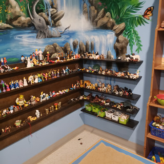 The room was also home to ALL the toys and storage was lacking. The old shelves that held all the sand toys were mismatched and were not quite deep enough to hold some of the larger toys they had. They also needed ample storage to hide the cleaning products, paints and other items that did not require easy access to clients.